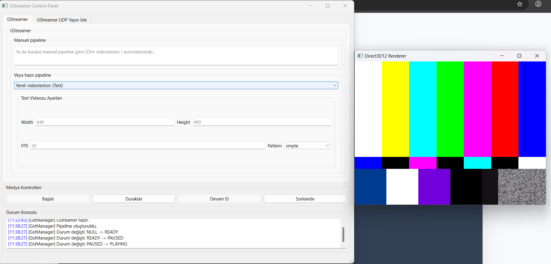 GstManager Qt App, GStreamer tabanlı medya işleme fonksiyonlarını kolayca test edebilmeniz için geliştirilmiş bir masaüstü uygulamasıdır. Kamera, ekran, test videosu ve UDP yayınlarını tek bir panelden yönetme imkânı sunar.